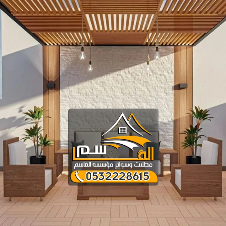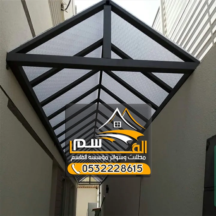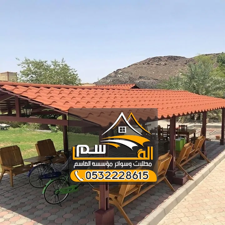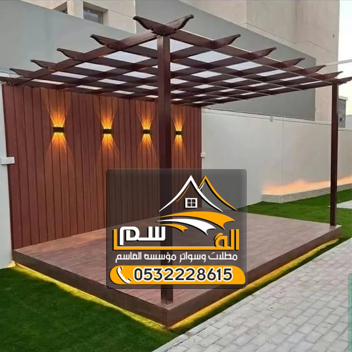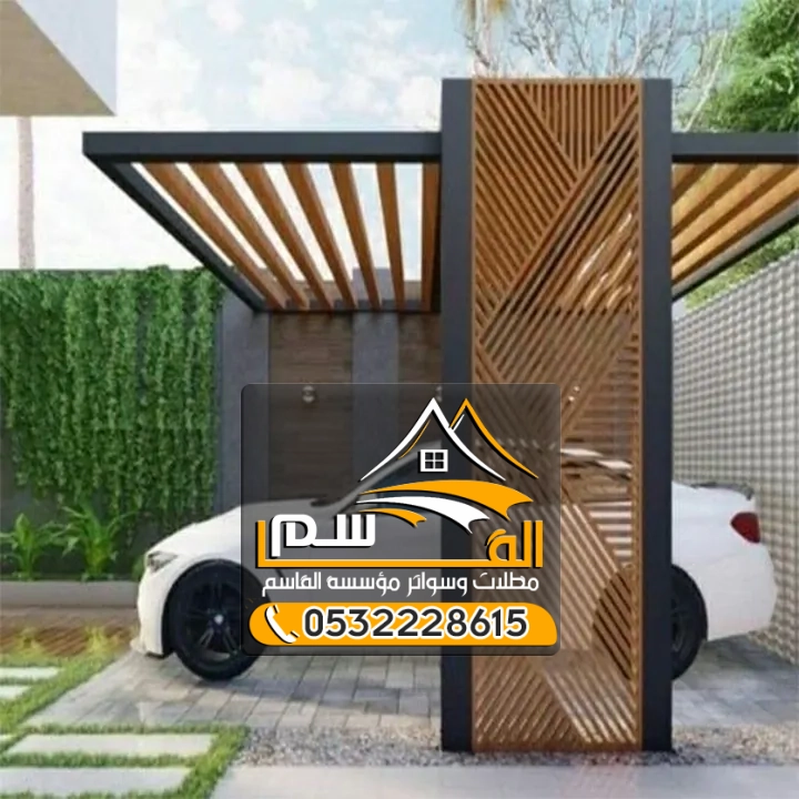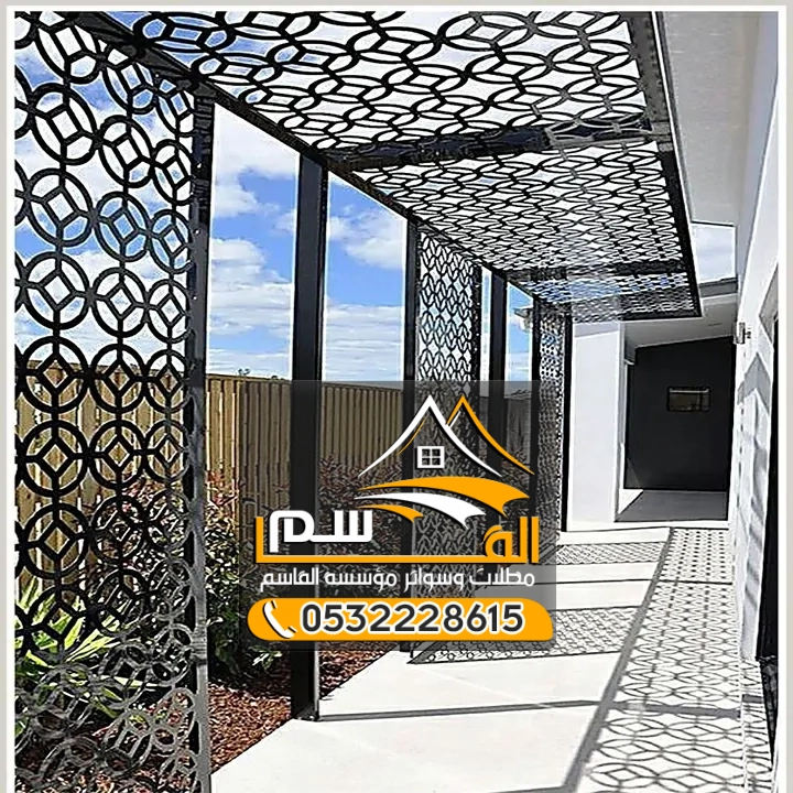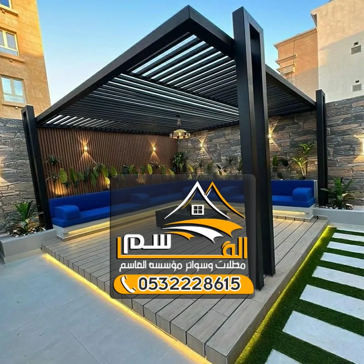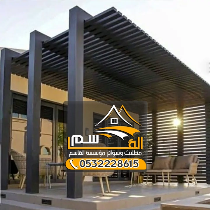 - مظلات خشبية وحديد: تصميم فخم يناسب الفلل والمباني.